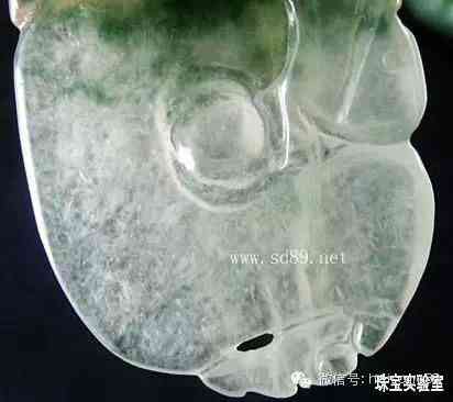 這是沒(méi)洗過(guò)澡的那個(gè),再看看細(xì)微的結(jié)構(gòu):似乎有絮狀結(jié)構(gòu),可是跟老坑翡翠的絮狀結(jié)構(gòu)明顯不同:翡翠的絮跟棉絮或者絲瓜瓤子一樣,結(jié)構(gòu)致密,而這個(gè)絮……怎么跟冰渣子一樣?   對(duì)啦,這就是巴山玉的特征!不過(guò),好的83玉也不多,市場(chǎng)九成以上都是處理過(guò)的83料,大部分都當(dāng)作B貨翡翠來(lái)銷(xiāo)售的。比如這塊83料,顯然沒(méi)有經(jīng)過(guò)酸洗,應(yīng)該算是83的A貨了,但因?yàn)椴皇钦嬲睦峡郁浯?,所以?xún)r(jià)格也不會(huì)很高,一般在正規(guī)的珠寶市場(chǎng)上應(yīng)該按照B貨價(jià)格銷(xiāo)售才對(duì),否則就是奸商了。另外,目前來(lái)說(shuō),很多鑒定機(jī)構(gòu)對(duì)83料出具的證書(shū),大多是翡翠(處理)!上圖的83料,雖然沒(méi)有酸洗灌膠,卻經(jīng)過(guò)激光打色,是標(biāo)準(zhǔn)的C貨!