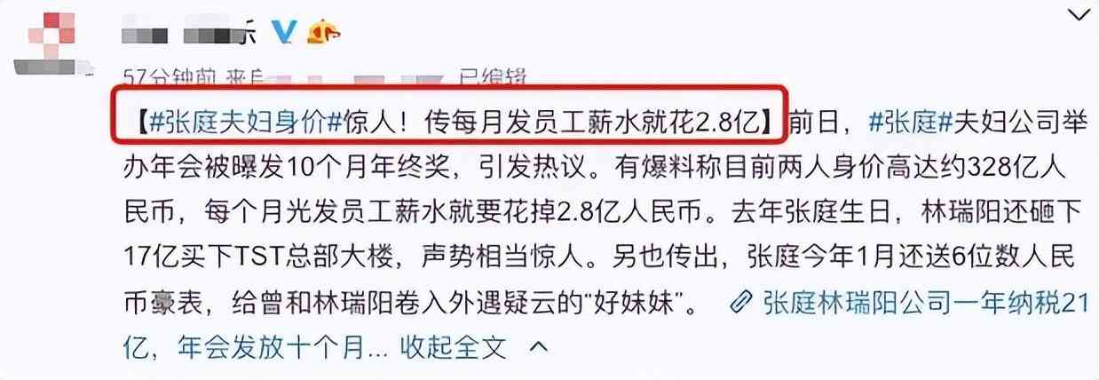 每個(gè)月,張庭光給員工發(fā)薪水就要2.8億,2018年一年,他們納稅21億的新聞還上過(guò)熱搜,她到底賺多少錢,大家可以自己算。