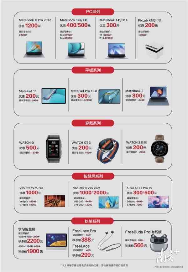 MatePad11原價(jià)2799元優(yōu)惠150元只需2649元,比官網(wǎng)優(yōu)惠50元。智慧屏V98原價(jià)29999元優(yōu)惠4700元只需25299元,比官網(wǎng)優(yōu)惠3000元。