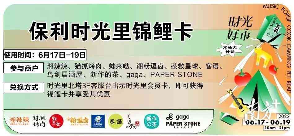 6月17日—19日,顧客蒞臨保利?時(shí)光里北塔3F客服臺(tái)出示時(shí)光里會(huì)員卡,即可獲得錦鯉卡并享受優(yōu)惠。