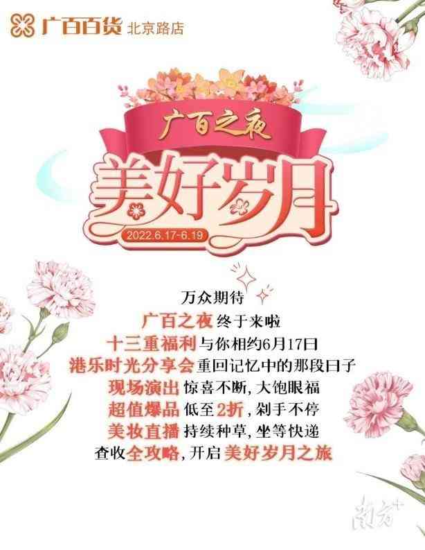 6月17日至19日舉辦“廣百之夜”。廣百之夜期間擬邀資深音樂(lè)人蒞臨門店并舉行線上音樂(lè)會(huì),營(yíng)造時(shí)尚與懷舊兼具的消費(fèi)氛圍。