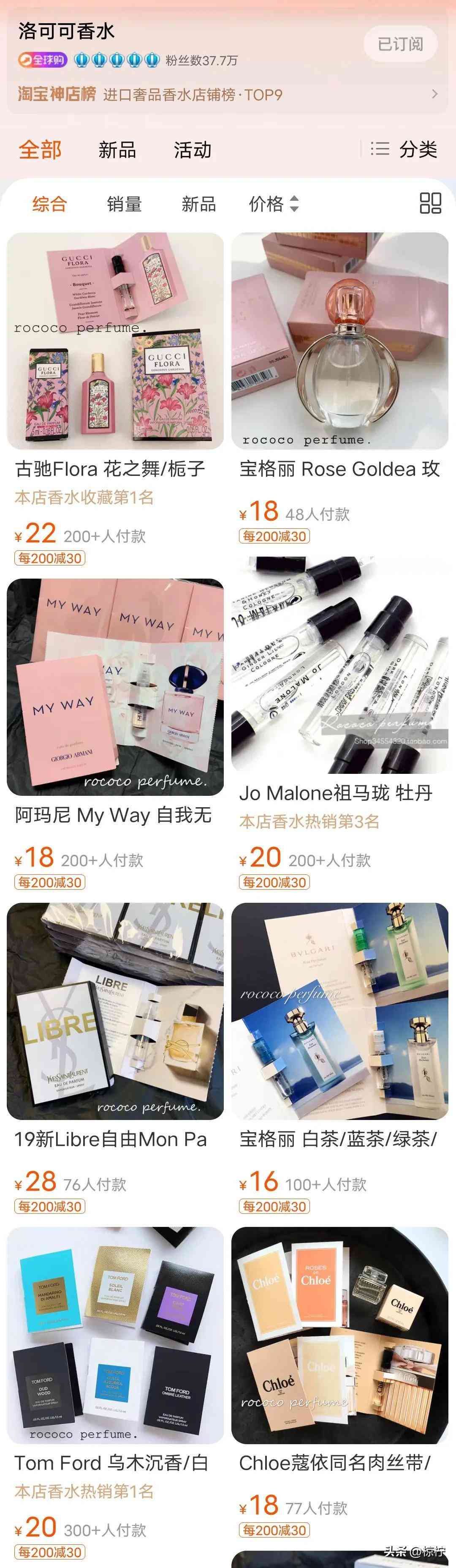 這一家就是做的香水小樣,相對(duì)來(lái)說(shuō)它的價(jià)格會(huì)稍微高一點(diǎn),但是它家的種類(lèi)比較齊全,一些稀有的香水是可以在它家找到的。