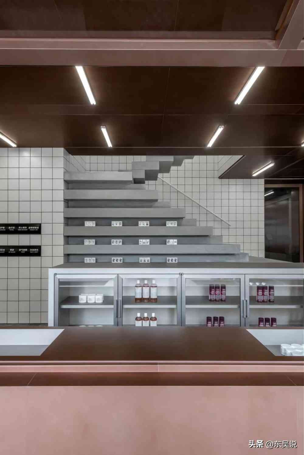 店內(nèi)的空間依然采用品牌標準的倉儲式貨架來組織空間,但又在入口處增加了圖書與雜志區(qū)來模擬快閃空間,借此傳遞品牌對于“美”的深層理解與理念。此外,店內(nèi)還增加了一個飲料吧,通過嵌入式的點單口和出餐口對外開放,增加了內(nèi)外空間的聯(lián)系。