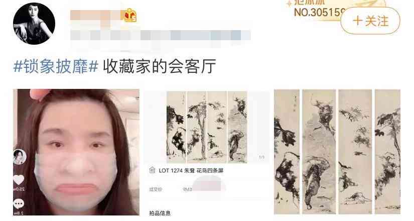 而早在2016年的拍賣會上,這幅《花鳥四條屏》就以43700000的高價(jià)格被拍賣了,沒想到這幅名畫竟然出現(xiàn)在了范冰冰的自拍背景中。