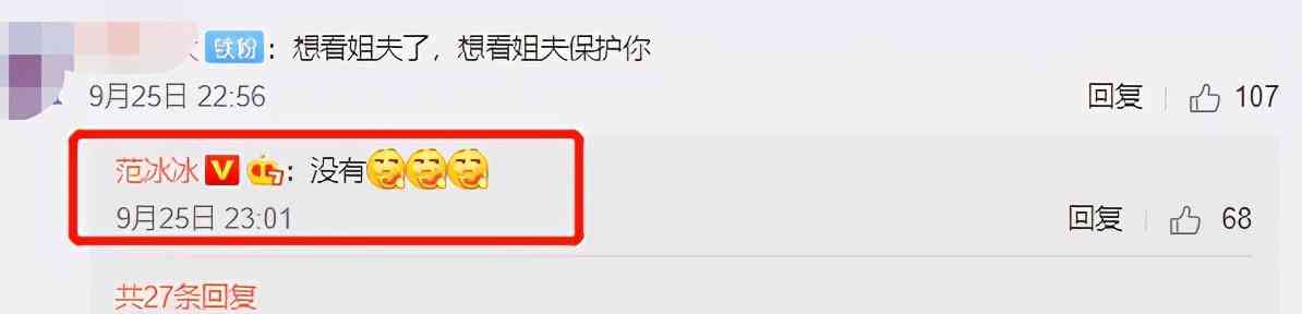 后面范冰冰又回復(fù)了一個(gè)“姐夫”的問題,回復(fù)“沒有”后面帶了三個(gè)吃瓜的表情,感覺相當(dāng)微妙。