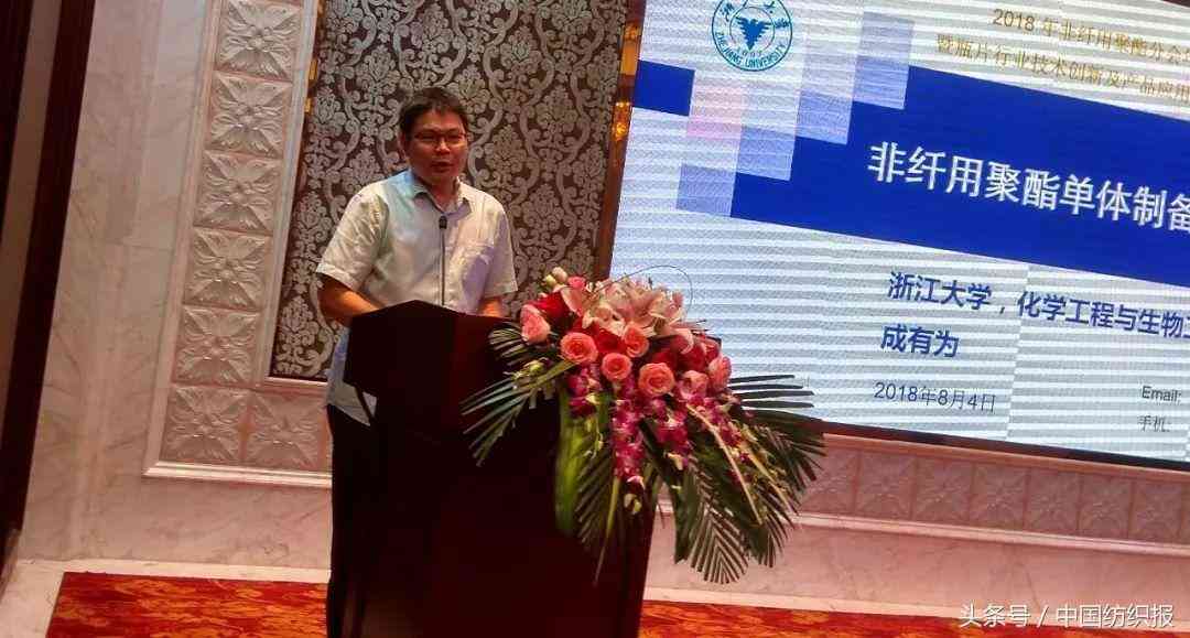 浙江大學(xué)化學(xué)工程與生物工程學(xué)院教授成有為講述的是《非纖用聚酯新單體工業(yè)制備技術(shù)進(jìn)展》,他詳細(xì)介紹了Tritan? 聚酯與CBDO技術(shù)開發(fā)、CHDM與低成本DMT生產(chǎn)新技術(shù)、2,5-呋喃二甲酸(2,5-FDCA) 與PEF、PIA生產(chǎn)新技術(shù)與低熔點(diǎn)聚酯四種技術(shù)的進(jìn)展情況。