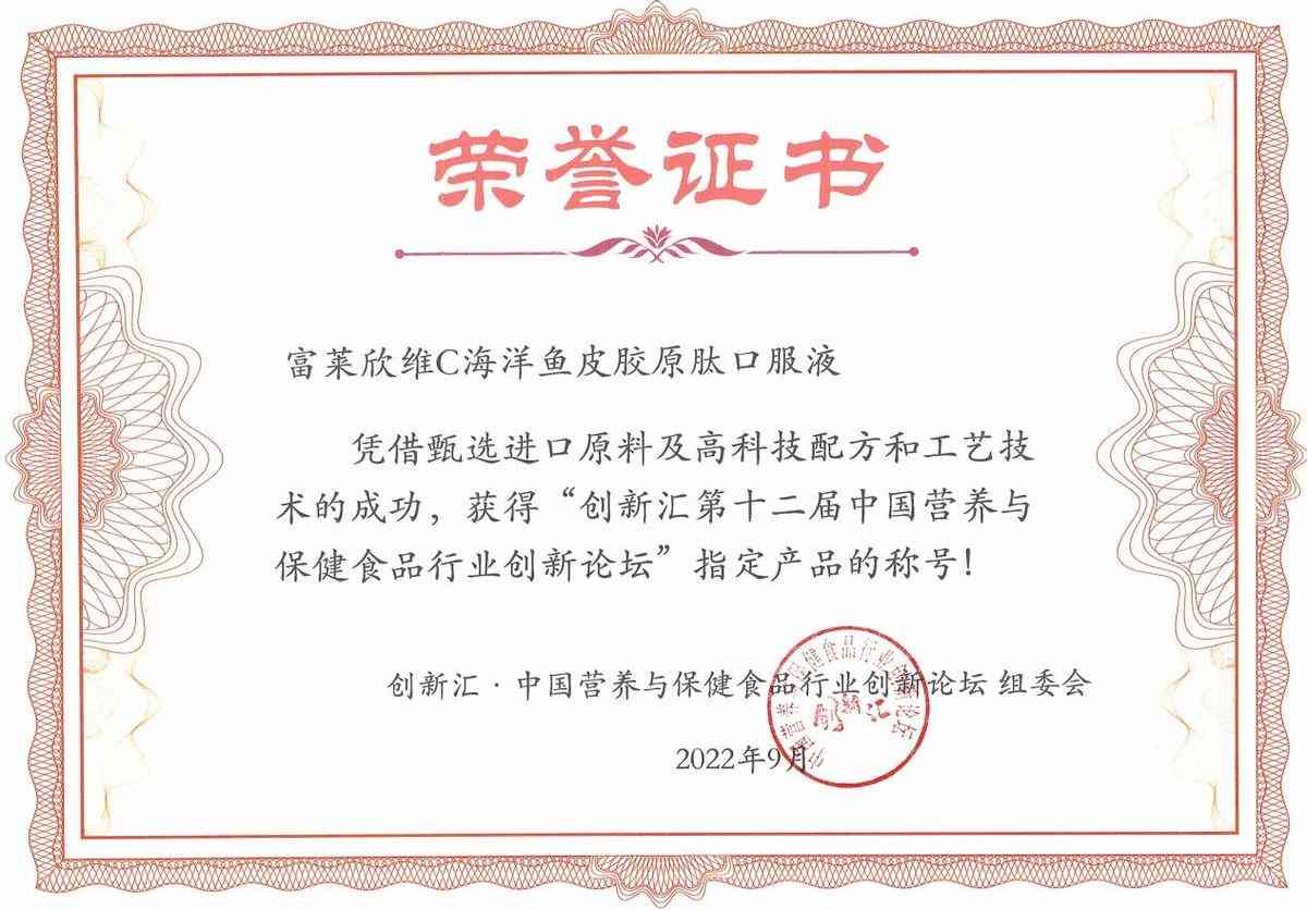 其中,近年來市場熱銷的富萊欣維生素C海洋魚皮膠原肽口服液備受廣大消費者推崇。憑借甄選進口原料及高科技配方和工藝技術的成功,獲得“創(chuàng)新匯第十二屆中國營養(yǎng)與保健食品行業(yè)創(chuàng)新論壇”指定產品的稱號!