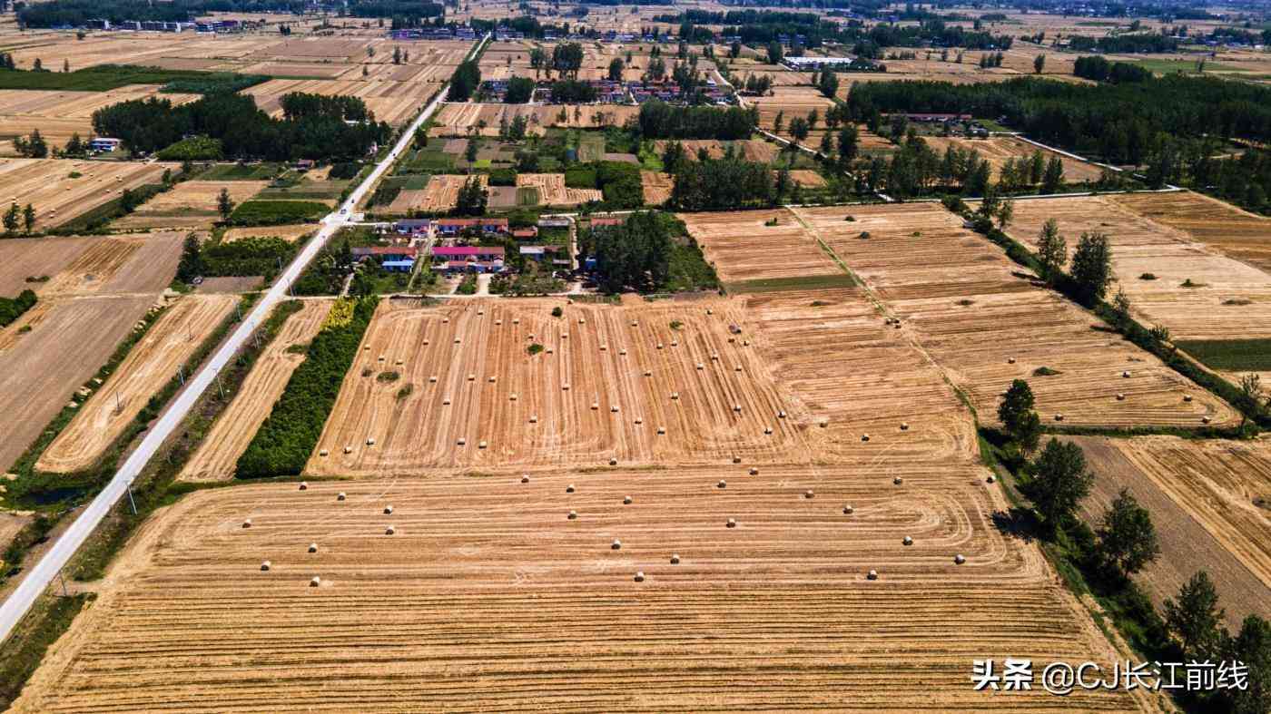 導讀: 圖文:王濤2021年6月6日,河南省淮濱縣西部鄉(xiāng)鎮(zhèn)的麥田里,從空中看去,金黃色的圓圓的小麥秸稈捆散放有序,不遠處的秸稈垛...