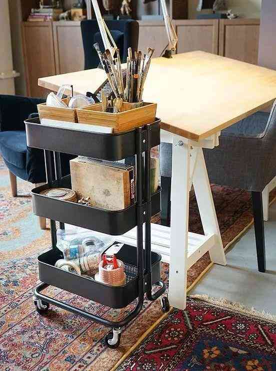 擺滿書本的書房,還堆滿了各種凌亂的辦公小文具。移動(dòng)手推車是拯救小文具收納的神器,無論是喜歡手工還是喜歡畫畫的人,興致或靈感來了的時(shí)候,小文具隨手可及,不用再費(fèi)事收拾。