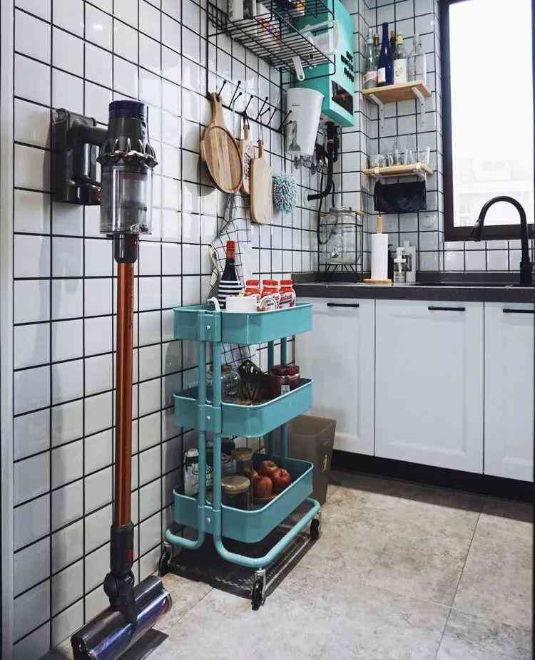 小戶型廚房雜物眾多,固定收納的面積有限,把小推車作為額外收納能夠減輕廚房收納的壓力。