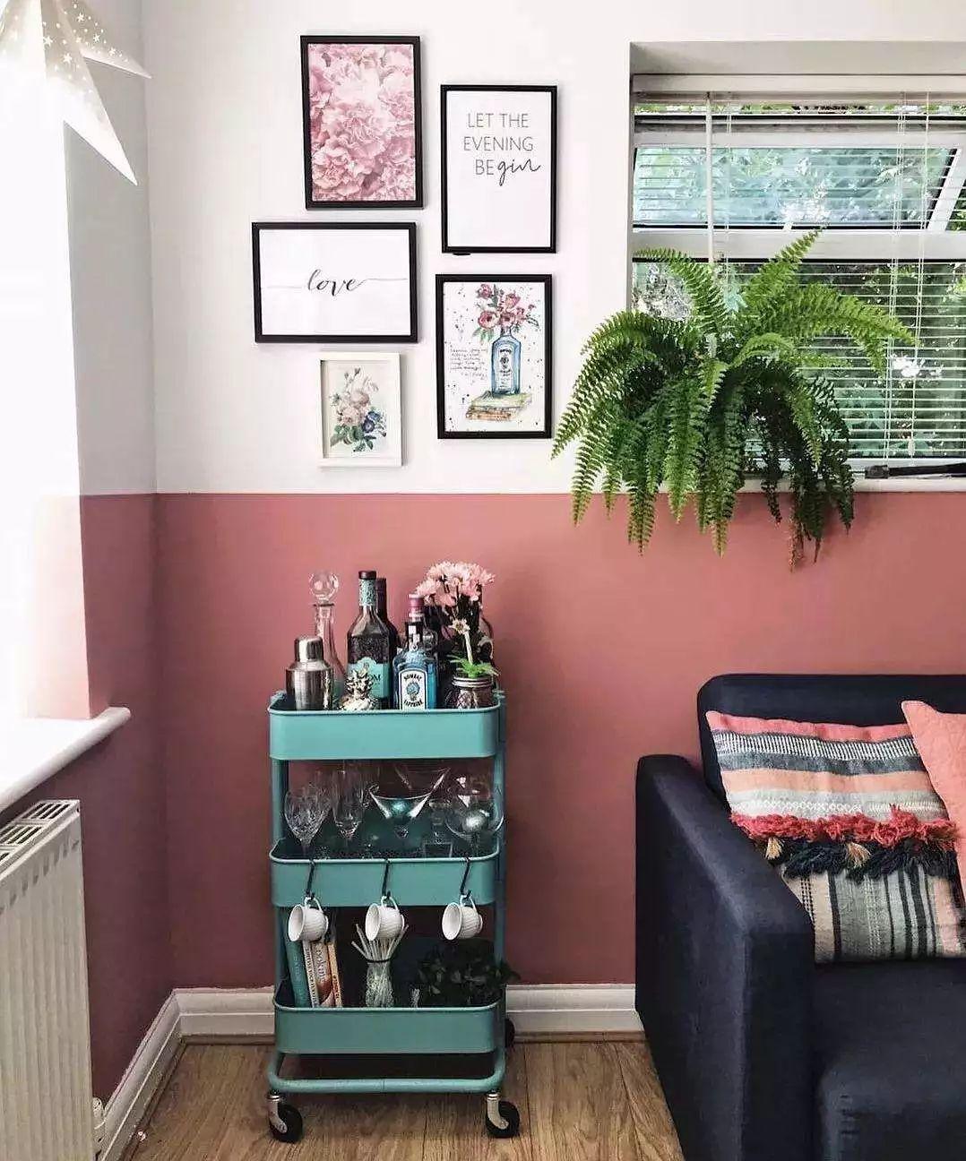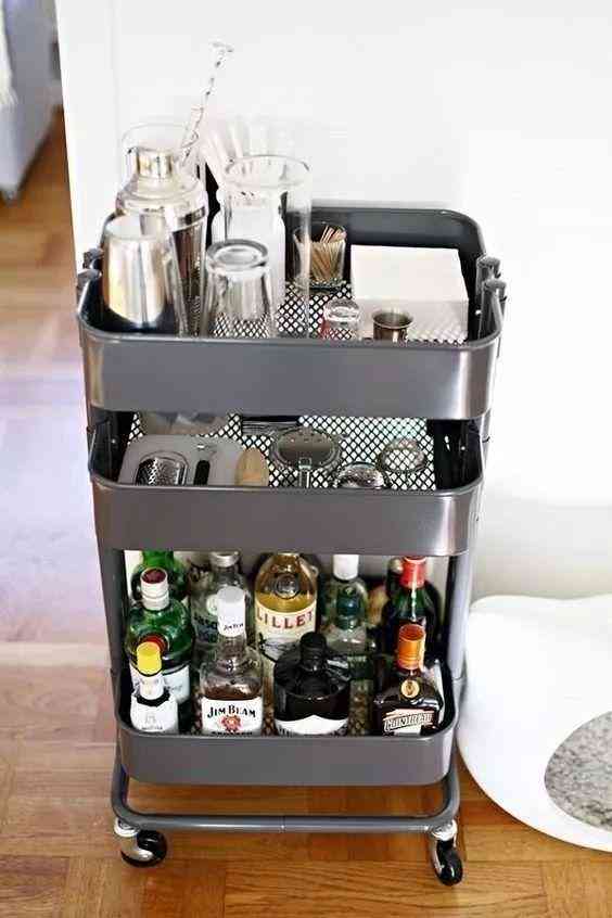小居室沒有空間裝吧臺(tái),心中也有一個(gè)私人酒吧夢(mèng)。用1m2小推車造作出一個(gè)小吧臺(tái),小家也有滿分的格調(diào)生活。