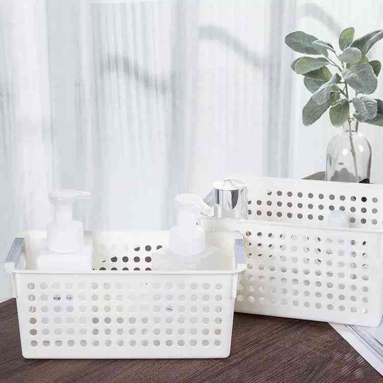 對(duì)于化妝瓶這些小物件可以使用收納籃來隔離收納,更能很好劃分空間。