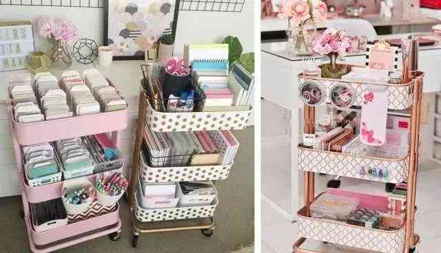 精致女孩的當(dāng)代修養(yǎng)就是買買買,爆滿的梳妝臺(tái)已經(jīng)沒有新買口紅的容身之處,一個(gè)移動(dòng)收納的小推車就可以擴(kuò)容你的化妝間。