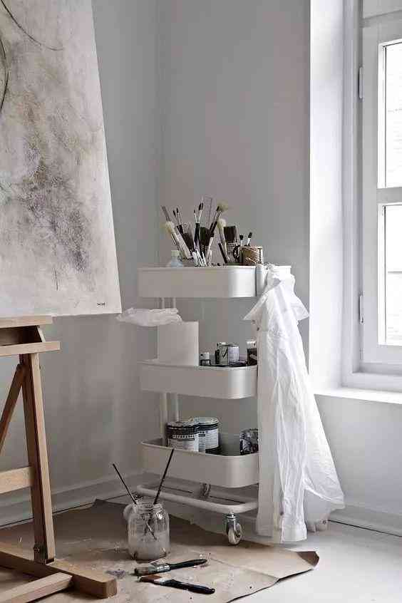 還有很多喜歡畫畫的人會(huì)把小推車當(dāng)做自己的繪畫工具車,用來收納自己的畫具。