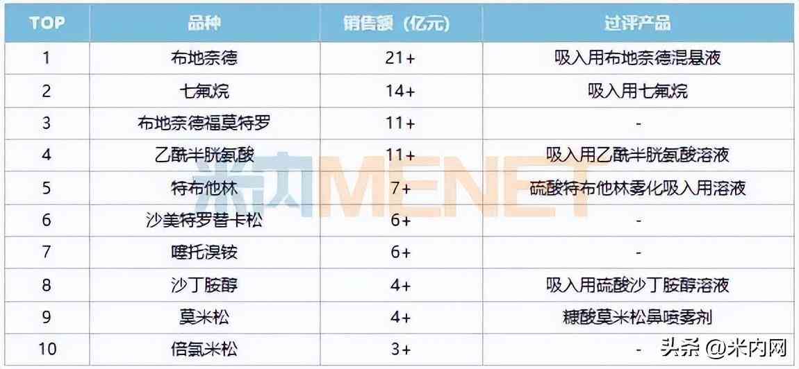 吸入劑TOP10品種洗牌,4個(gè)暢銷品種過(guò)評(píng)企業(yè)令人期待