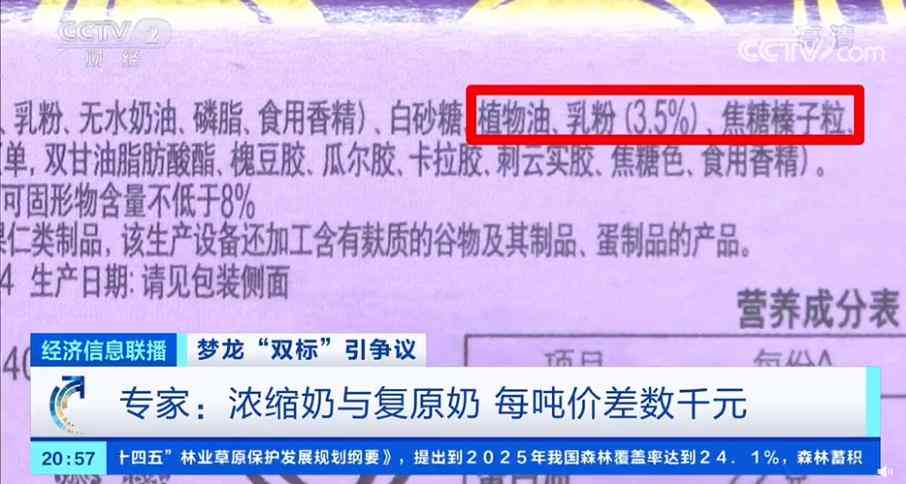 如果要保障蛋白質(zhì)含量一樣,復(fù)原奶的成本大概在八千到一萬元每噸,而濃縮奶在一萬三到一萬四每噸,兩個之間的價格差距約在每噸三到四千元,就不難發(fā)現(xiàn)中國用復(fù)原奶的原因,除了奶的類型有差異外,中外夢龍產(chǎn)品在奶和植物油的排序上也有差異。