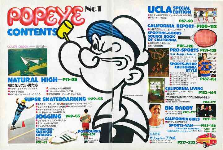 在隨后的幾期,《POPEYE》更是讓來自美國(guó)的滑板運(yùn)動(dòng)和沖浪文化,在日本流行了起來。