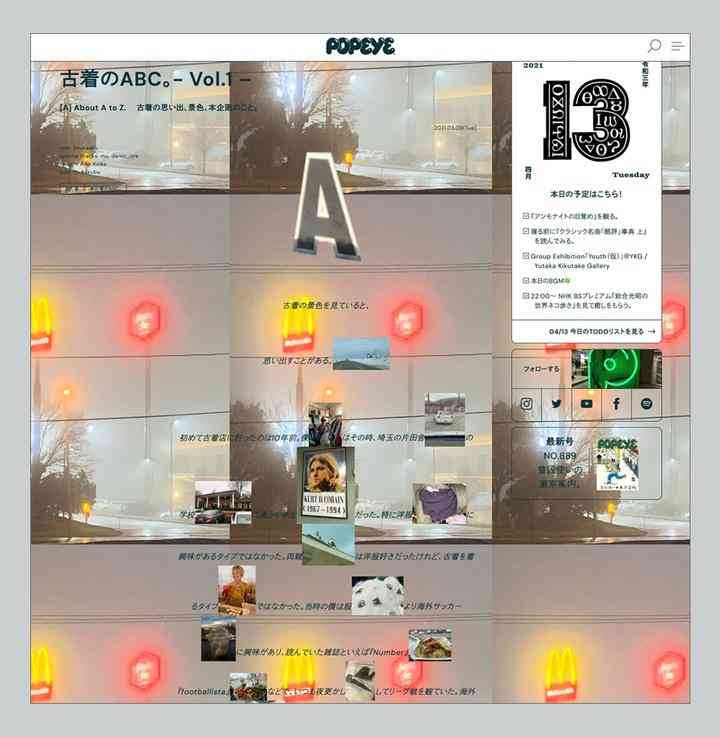Yota Shiraishi 是負(fù)責(zé)這次網(wǎng)站制作的設(shè)計(jì)師與工程師,他將《POPEYE》雜志獨(dú)特的排版風(fēng)格挪到了網(wǎng)站上,不過是會(huì)動(dòng)、會(huì)說話、會(huì)唱歌的《POPEYE》。