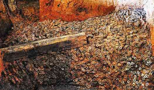 南昌西漢海昏侯墓考古工作一直在持續(xù)進行,目前考古人員完成了對1號主墓棺柩的整體套箱工作,接下來將要通過航吊設備將棺柩轉移到運輸車上,再運送至文保用房的考古實驗室。除了主墓棺柩之外,主墓中的部分五銖錢和5號墓的棺柩也將同步打包送至文保用房。昨日,考古人員對遺留在主墓內2噸多重的五銖錢進行打包清運。