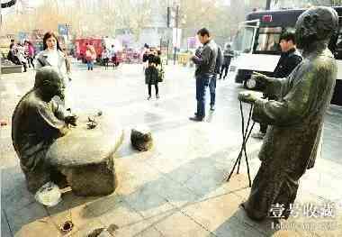 2、街頭老殘聽曲雕塑遭損毀:倒茶伙計不見了