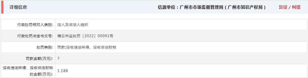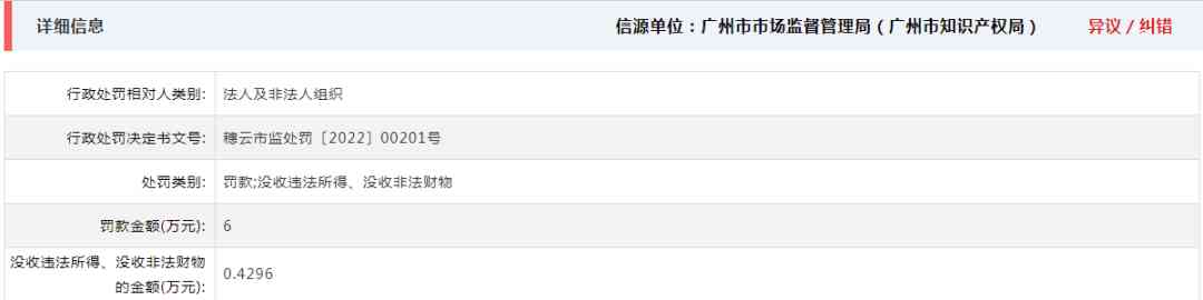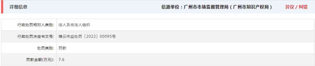4月19日,信用廣州發(fā)布的公示顯示,因涉嫌對侵犯他人注冊商標(biāo)專用權(quán)行為,廣州市美度化妝品有限公司被處罰款7.6萬元。