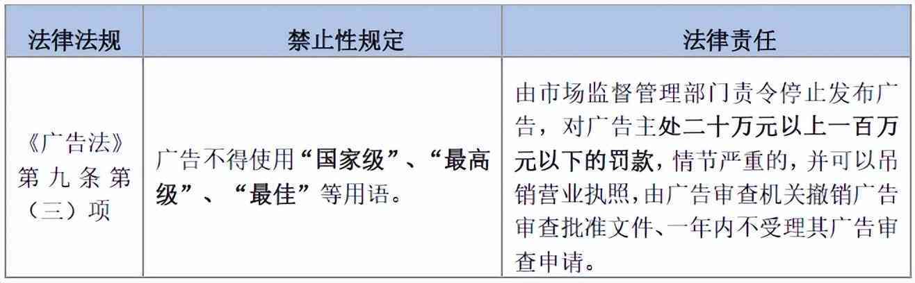 根據(jù)《中華人民共和國廣告法》(以下簡稱《廣告法》)第九條第(三)項的規(guī)定,廣告不得使用“”、“”、“最佳”等用語,此項規(guī)定構(gòu)成了實踐中絕對化用語違法情形的執(zhí)法依據(jù)。絕對化用語的禁止性規(guī)范旨在防止經(jīng)營者使用此類非客觀的描述對消費者進行錯誤暗示或引導,違反者可能承擔如下行政責任: