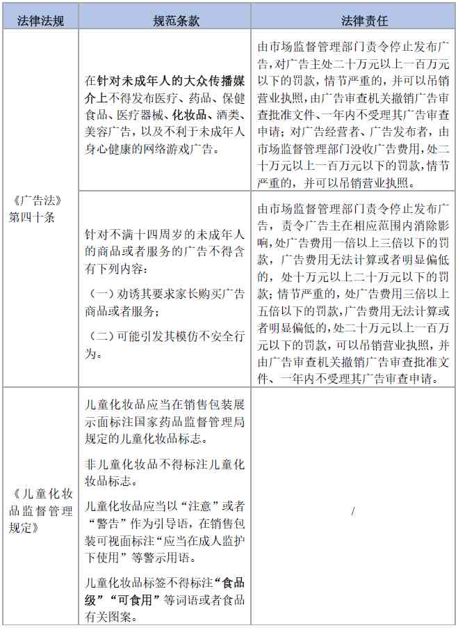 2022年1月1日起正式生效的《兒童化妝品監(jiān)督管理規(guī)定》不僅對兒童化妝品生產(chǎn)經(jīng)營活動作出了規(guī)范,還明確了兒童化妝品的功效宣稱、標簽、廣告等特殊要求。綜合當下的法律法規(guī),兒童化妝品廣告宣傳需要考慮受眾心理,在發(fā)布平臺、廣告內(nèi)容等多個方面受到限制: