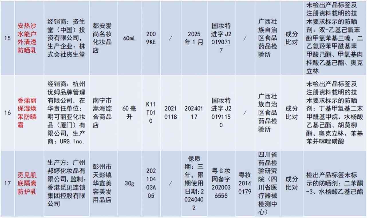 記者梳理發(fā)現(xiàn),近年來資生堂“安熱沙”產(chǎn)品多次被通告不合格: