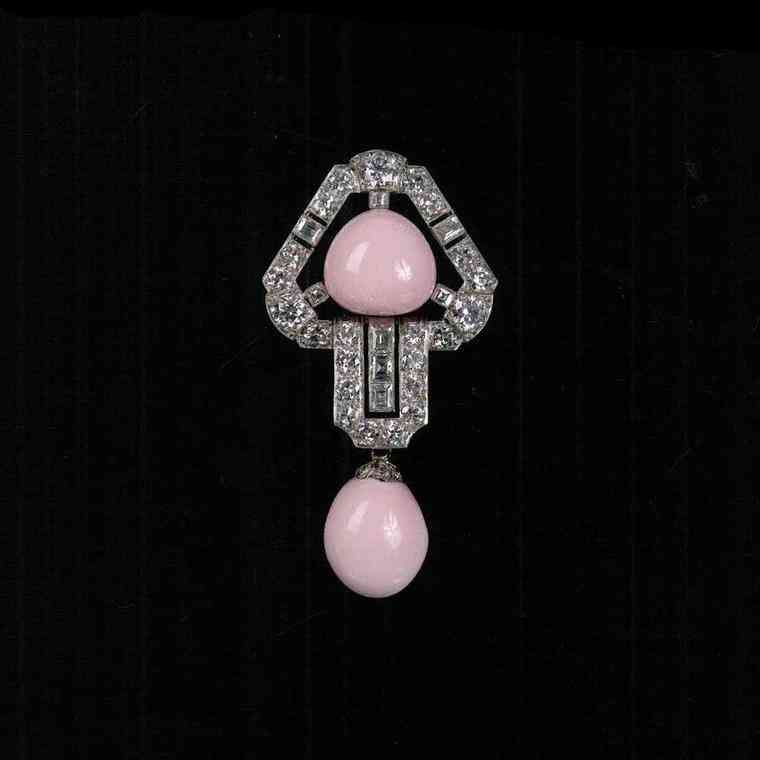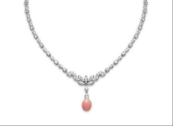 維多利亞晚期和愛德華七世時期是海螺珍珠的流行高峰期,當時它還被叫做粉色珍珠。另一個歷史明證就是英國瑪麗女王時期出現(xiàn)的海螺珍珠胸針,2005年在美國國家自然歷史博物館的“珍珠的魅力”(The Allure of Pearls)展上展出過。這枚胸針上有兩顆天然粉色海螺珍珠,分別為24.9克拉和28.1克拉,由當時的皇家御用珠寶商Garrard & Co.設計。