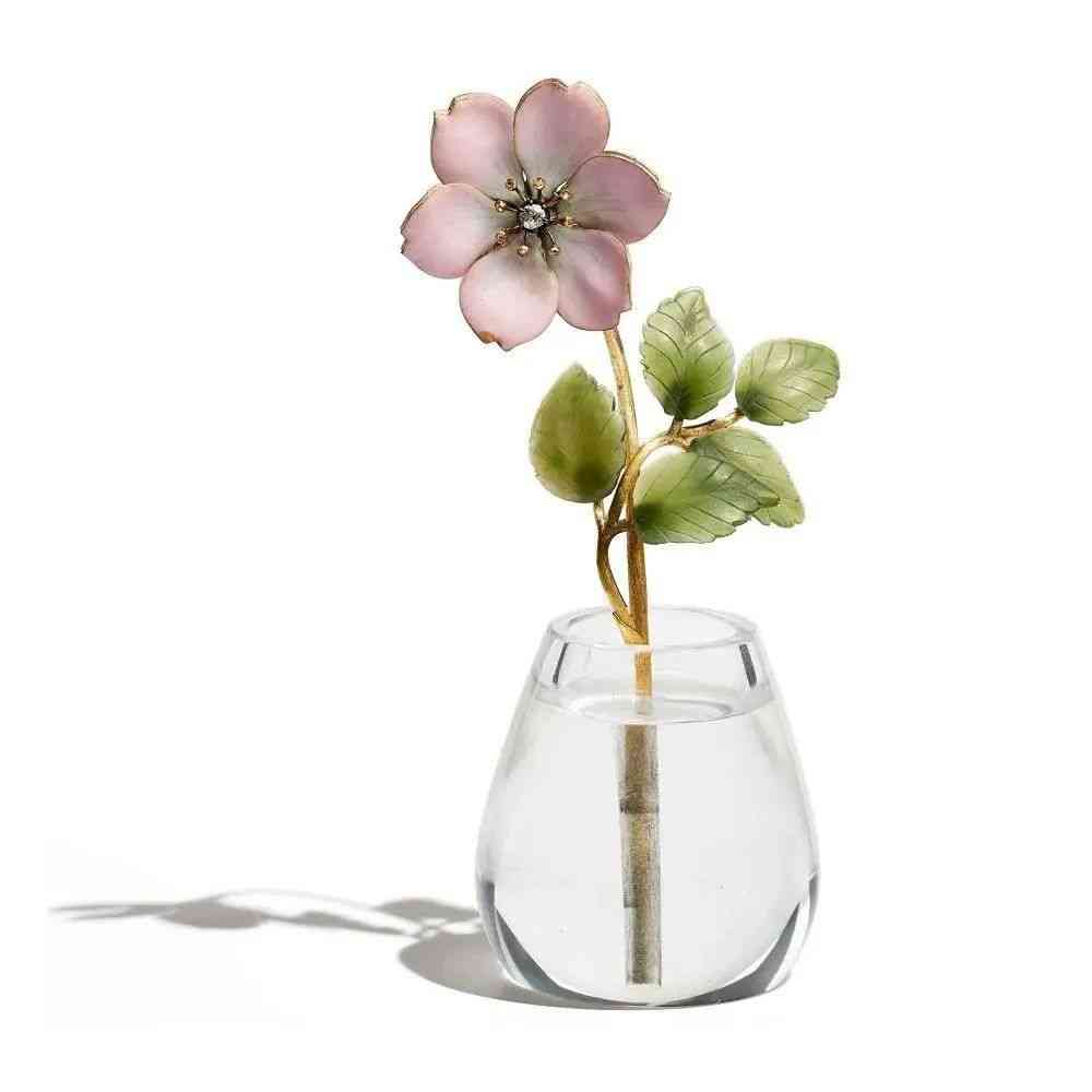 花瓶由水晶制作,花朵繪有彩色琺瑯