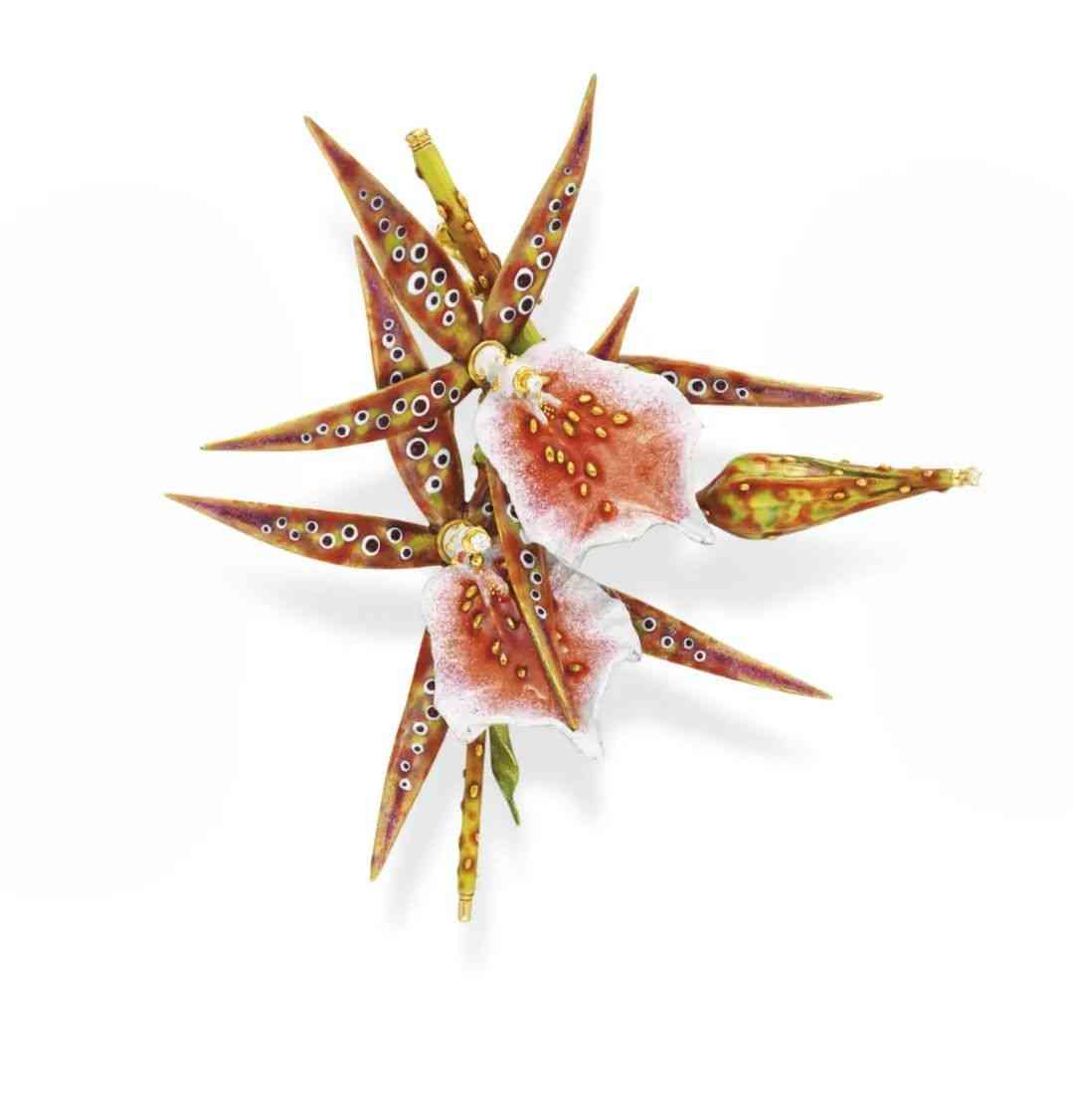 Tiffany琺瑯蘭花胸針 成交價:$92,500美元 佳士得拍賣行