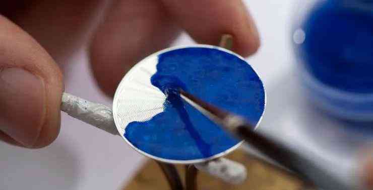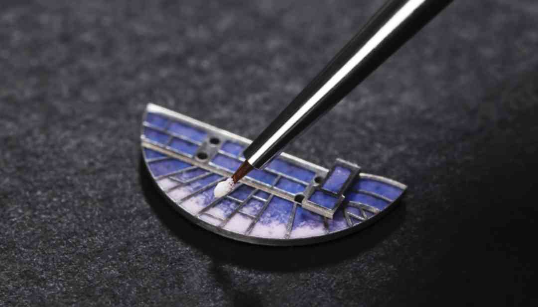 畫琺瑯現(xiàn)在多用于制作琺瑯腕表,想要畫出精美的表盤圖案,極其考驗(yàn)琺瑯師的經(jīng)驗(yàn)和技術(shù)。一幅完整的畫作通常需要琺瑯師調(diào)配出幾十種甚至百種色調(diào),僅制作琺瑯表盤耗時往往就長達(dá)幾十甚至上百小時。