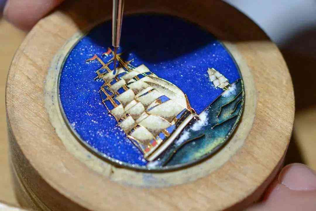 畫琺瑯有個更為人熟知的名字——微繪琺瑯,是將琺瑯當(dāng)作顏料在胎體上進(jìn)行繪畫。它的重點(diǎn)就在于“畫”,制作過程是先在胚盤之上覆蓋一層抗變形琺瑯釉料,之后由琺瑯師通過細(xì)致的貂毛筆,借助顯微鏡在胚盤之上畫上數(shù)層彩色釉料,繪制出精美圖案后進(jìn)行燒制。