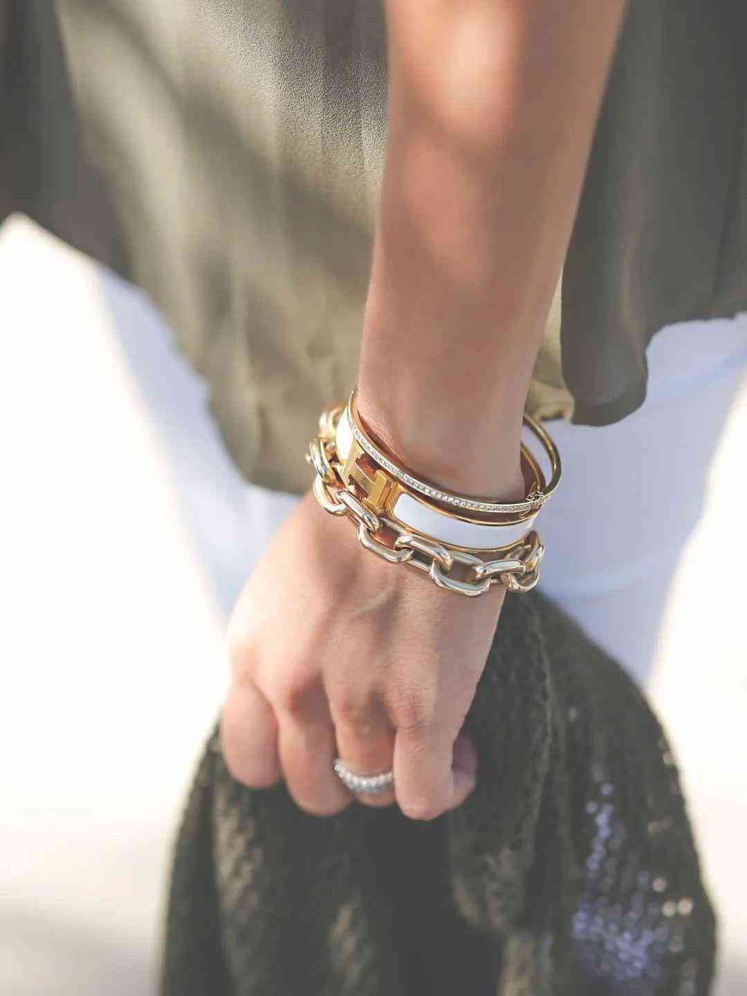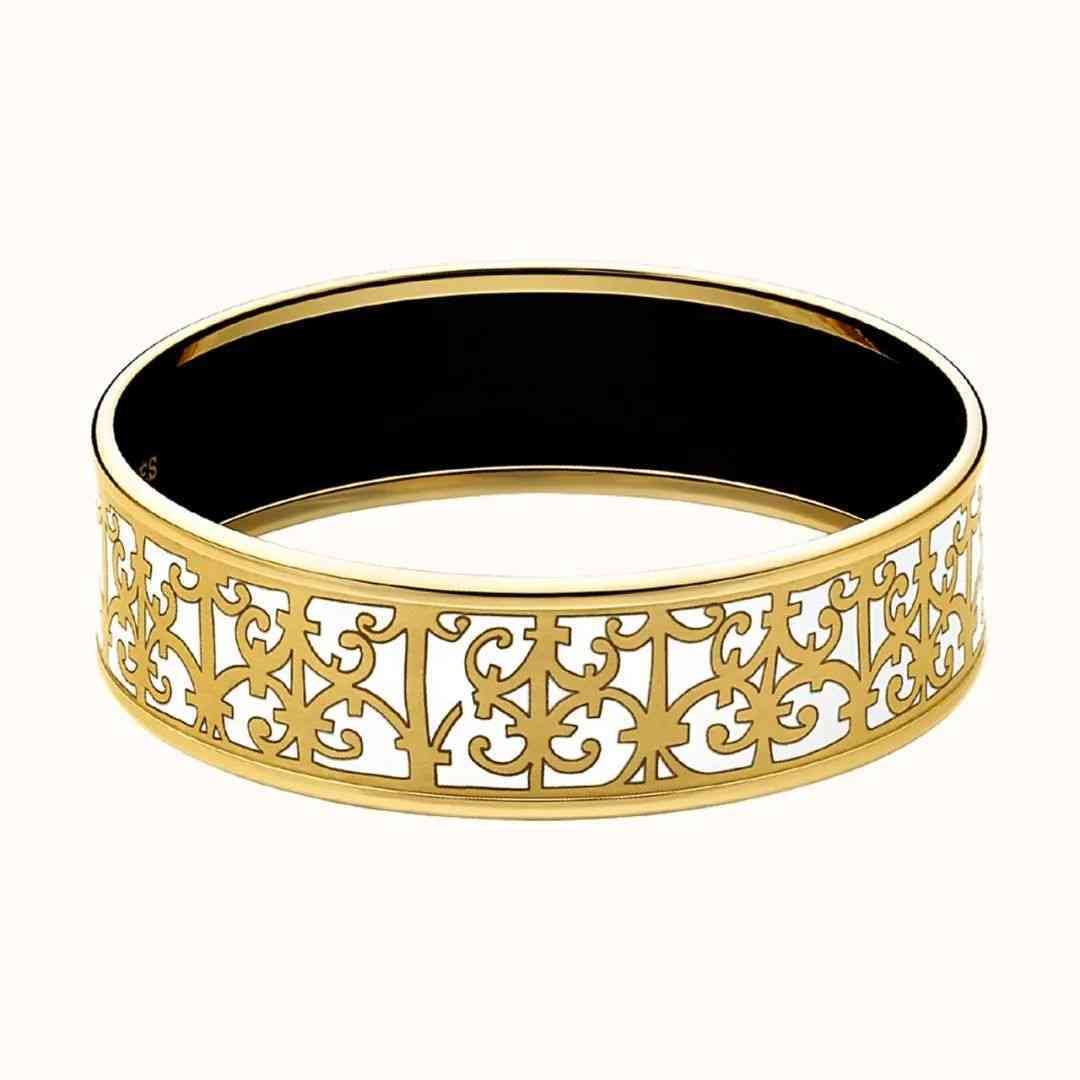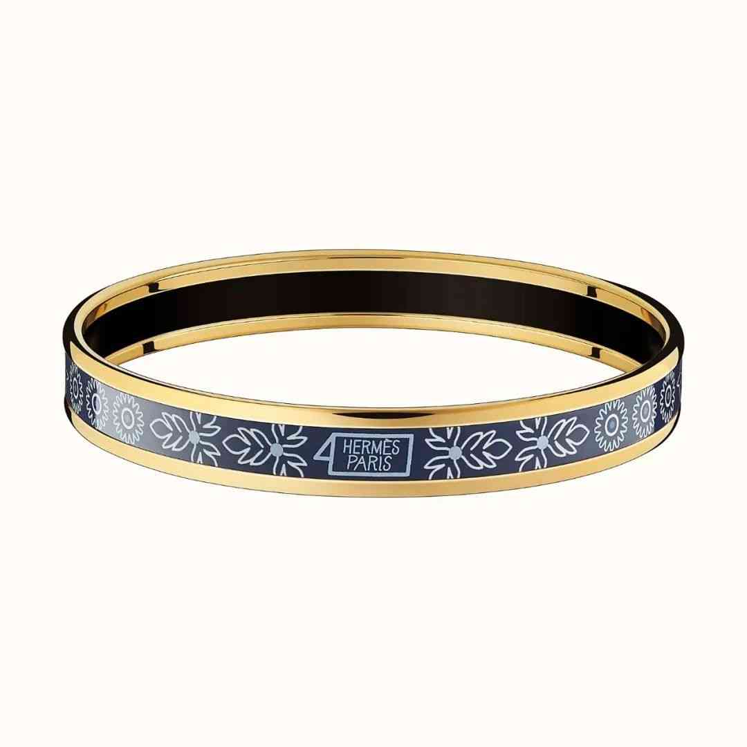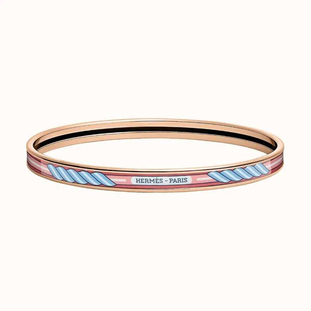 愛馬仕每年還會推出不少琺瑯手鐲,正如圍巾一樣,這些琺瑯手鐲均采用由鍍金或鍍銀搭配頗有線條感和視覺效果的琺瑯圖案制作而成,有多種顏色和圖案,而且根據(jù)不同季節(jié)的流行元素,也會發(fā)生相應(yīng)的變化。