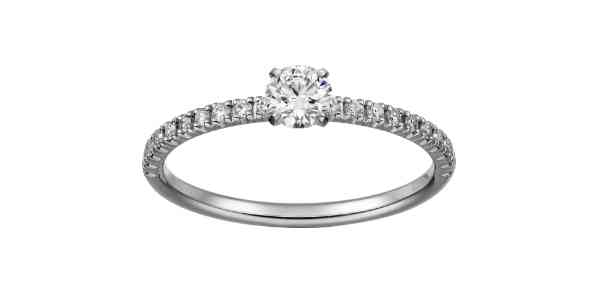 鉑金本身具有永不褪色的天然白色光澤,能更好的襯托出鉆石的璀璨無暇。而個(gè)將鉑金與鉆石做完美結(jié)合的就是卡地亞創(chuàng)始人:路易.卡地亞。從19世紀(jì)末期開始,卡地亞用鉑金制作兼顧而精美的鑲座,將鉆石襯托的更加完美,因此卡地亞可以說是鉑金鉆戒額開創(chuàng)者。迄今為止,在卡地亞官網(wǎng)我們可以看到23個(gè)戒指系列,每個(gè)系列中都有多款鉑金鉆戒。