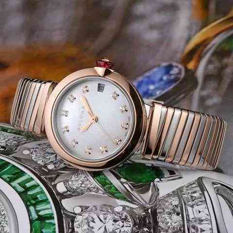 18K玫瑰金外殼、表帶與鉆石刻度打造而成,珍珠母貝為盤,這樣的搭配似乎與前幾款鉆表并無差別,但機(jī)械機(jī)芯卻是寶格麗抬高身價(jià)的重要原因。在手表中,機(jī)械機(jī)芯更值錢;在女朋友眼中,除了好看值錢之外,自己有,別人都沒有的才叫值錢。比如這款寶格麗~