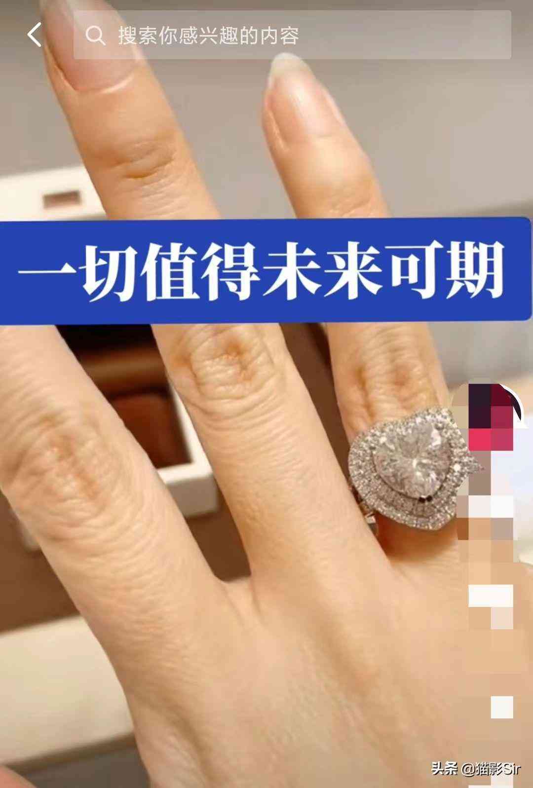 一個視頻中顯示的是一個女生纖細的手指上戴著一個巨大無比的鉆戒。配以文案“一切值得,未來可期”,短短的8個字也看出了女主的心態(tài)。此時的女主對于這樁婚事充滿了期待了憧憬。畢竟,能夠嫁入朱家是多少人夢寐以求的事情。相比較普通人,朱之文家也算是明星家庭。這樣的一個家庭,在財力上還是有一定的水平的。所以,女主能夠曬出這樣的一顆大鉆戒也在情理之中。