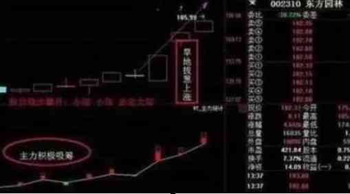 “旱地拔蔥”指股價(jià)經(jīng)過(guò)一段放量上行后,開(kāi)始向中期均線縮量回落。在靠近中期均線附近如(通常是60日、90日、120日均線)后企穩(wěn)走平或小 幅反彈,某日突然拉出一根急速放量的大陽(yáng)線(漲停板或是9個(gè)以上的大陽(yáng)線),陽(yáng)線直指前期高點(diǎn),這往往是第三浪的啟動(dòng)形態(tài),后市該股將展開(kāi)新一輪上攻行情,往往還有10%以上的上漲空間,這根啟動(dòng)陽(yáng)線拉得較為突然,且力度很猛,故稱為“旱地拔蔥”。根陽(yáng)線漲停價(jià)附件就是短線的絕佳進(jìn)倉(cāng)點(diǎn)。