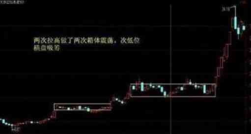 在經(jīng)過(guò)步底部溫和進(jìn)場(chǎng)之后,如果是真正的莊股,不可能立馬拉升,因?yàn)閳?chǎng)中仍有大部分的散戶持有部分的籌碼,那么這個(gè)時(shí)候,股價(jià)就需要二次的箱體整固,第二個(gè)箱體跟前一個(gè)箱體的位置相差不超過(guò)20%,散戶在波拉升之后吃到甜頭,很容易拋出手中籌碼,這樣的二次箱底走勢(shì),一般會(huì)出現(xiàn)在強(qiáng)勢(shì)走勢(shì)中,如果趨勢(shì)比較弱,是不適用的。