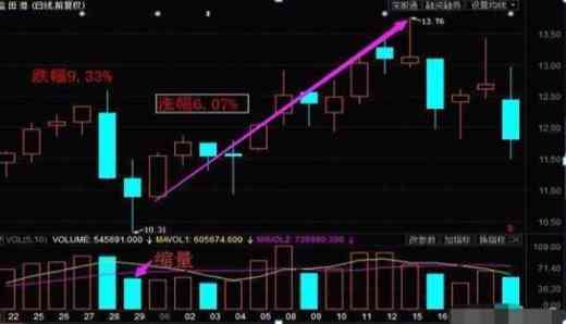股價(jià)兩頭往中間靠攏,形成一個(gè)夾角,這個(gè)就是我所說(shuō)的“黃金三角”。當(dāng)股價(jià)是在黃金三角之內(nèi)或者是在三角邊緣線處,此時(shí)若是成交量放量,資金流進(jìn),那么股價(jià)將突破黃金三角邊緣線的上邊,開(kāi)始加速上升。黃金三角形態(tài)越扁,說(shuō)明后市上漲的爆性越強(qiáng)。