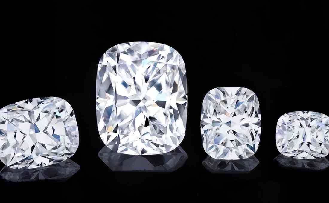 墊形鉆石邊角呈圓形,擁有正方、長(zhǎng)方兩種形態(tài)。墊形鉆石的刻面也比較大,從而增加了鉆石本身的亮度。同時(shí),這些較大的刻面也使鉆石內(nèi)部的內(nèi)含物(inclusion)變得明顯,因此對(duì)凈度要求高。