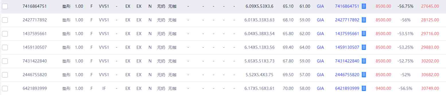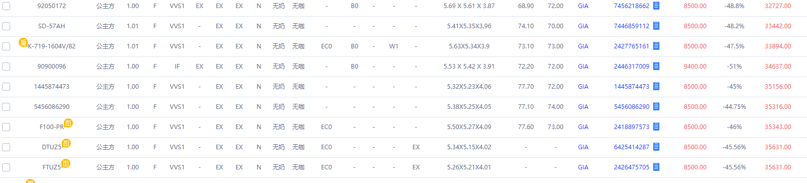公主方形鉆石VS墊形鉆石價(jià)格表如下(1克拉大小):