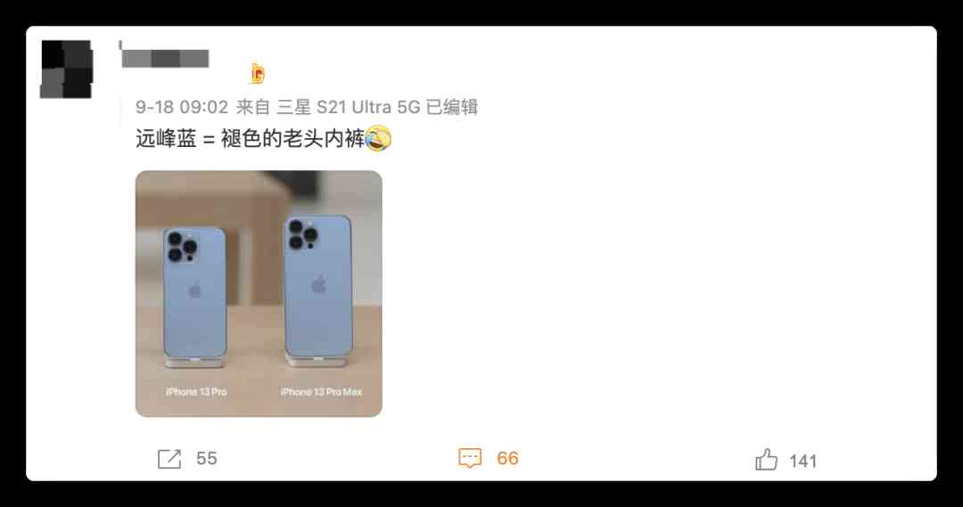 于是在網(wǎng)上有博主將 iPhone 13 Pro 遠(yuǎn)峰藍(lán)稱為 “老頭樂”……