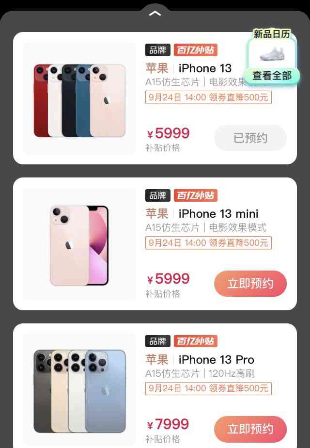 13 mini 售價(jià) 5199 元起,13 售價(jià) 5999 元起;