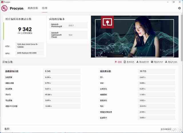 使用ULProcyon軟件測試顯卡應對常用創(chuàng)作軟件的性能,測試項目為圖片編輯與視頻編輯的基準測試,圖片編輯項目調用LR、PS,視頻編輯項目則是調用PR,對常用Adobe創(chuàng)作軟件的小伙伴具有一定的參考性。