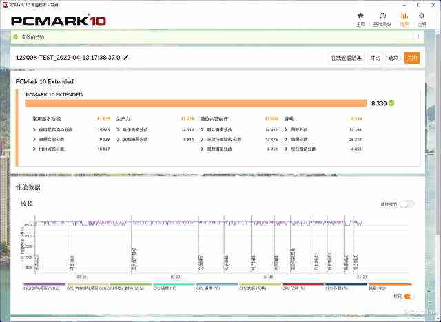日常體驗部分,我們對顯卡進行PCMark10Extended基準測試,測試內容包括常用基本功能、生產力、數(shù)位內容創(chuàng)作以及游戲四部分,基于實際應用和活動的測試來衡量PC性能,包括瀏覽網站,視頻聊天,編寫和電子表格,編輯照片和視頻以及玩游戲等日常任務的一系列性能測試。
