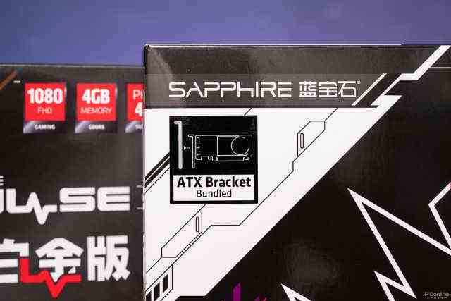 顯卡外形為單槽半高設計,整體外形小巧,PCB上方為散熱模組,采用藍寶石白金系列的黑紅配色外觀,模組由底部四顆螺絲固定。