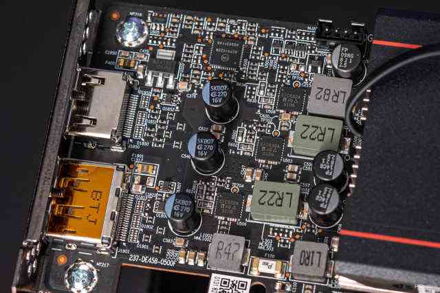 這次藍寶石RX6400白金版的拆解相對簡單,將固定散熱模組的四顆螺絲卸下,斷開風扇排線,就能看到顯卡的PCB了。