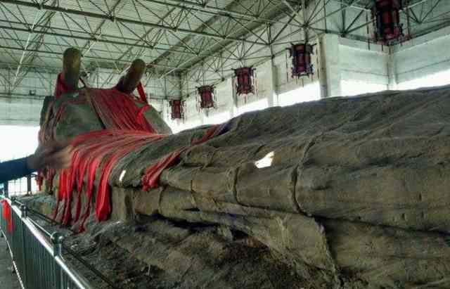 在戰(zhàn)國時(shí)期的時(shí)候,君王下葬有過使用石像鎮(zhèn)陵的,而且如果要雕刻這樣大的巨龍,肯定要耗費(fèi)不少的人力,如果是君王的話還說得過去。