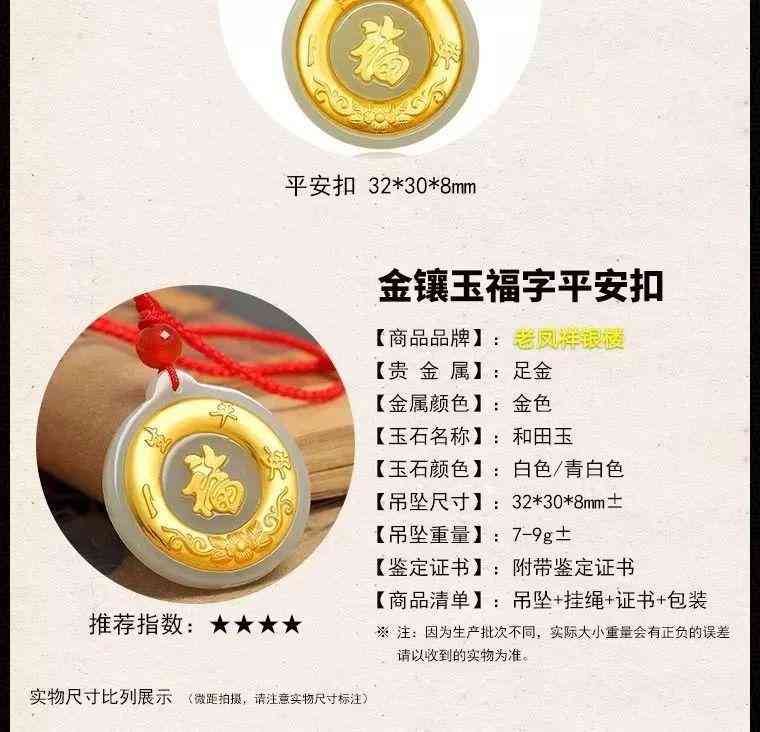 B:老鳳祥金鑲玉足金平安扣吊墜1件